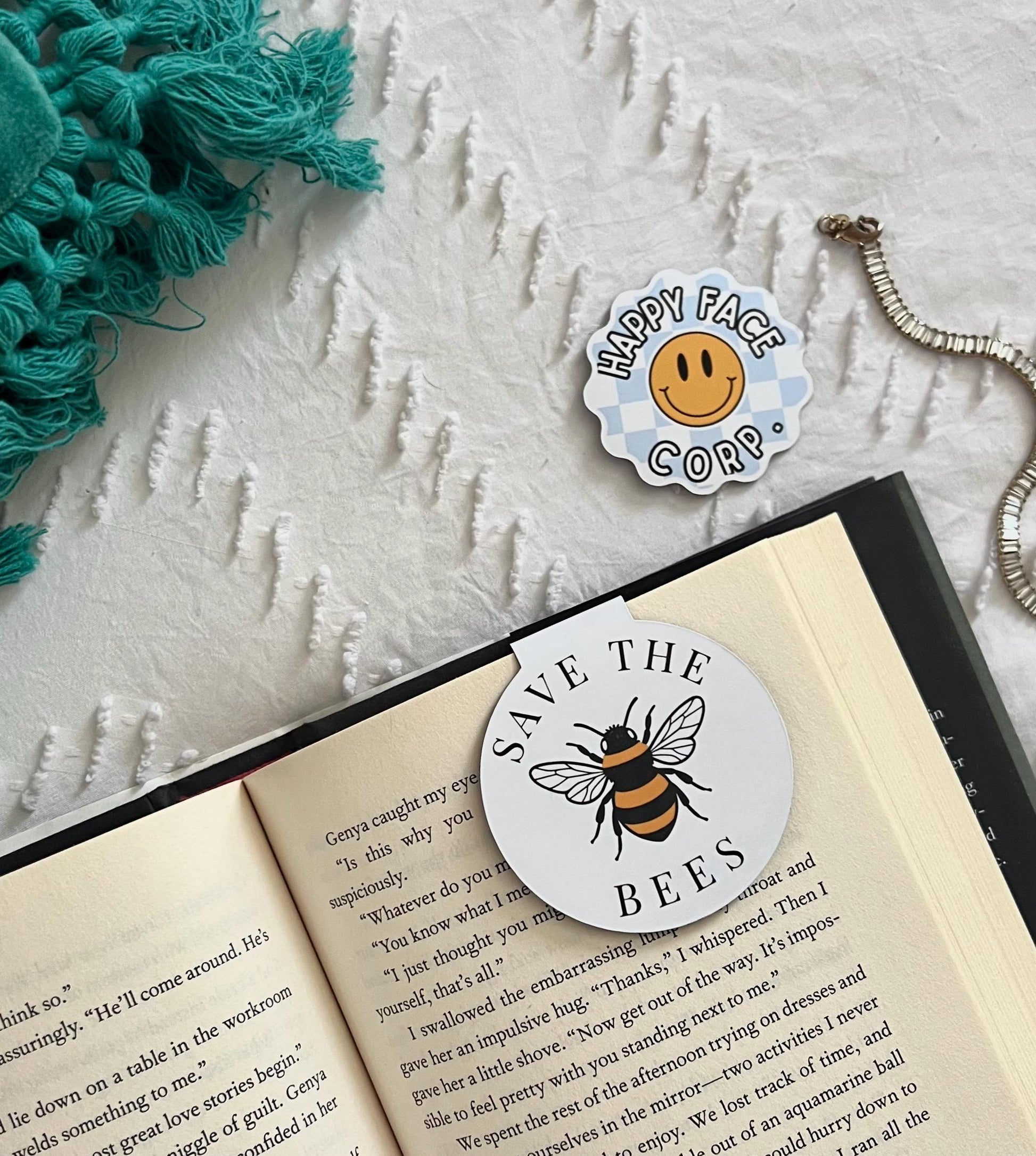 These are perfect for a friend that loves to read! INFO: They are made from heavy cardstock and laminated with a waterproof top. Also has 2 small button magnets for a super grip to clamp multiple pages at once. SIZE: 2.5" x 5.3" ***DO NOT USE AROUND SMALL CHILDREN WITH THE BUTTON MAGNETS***